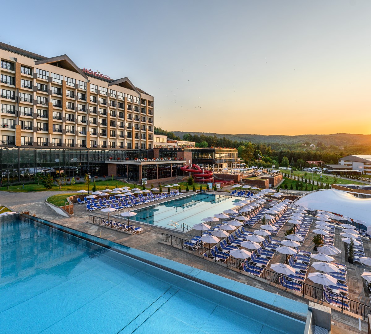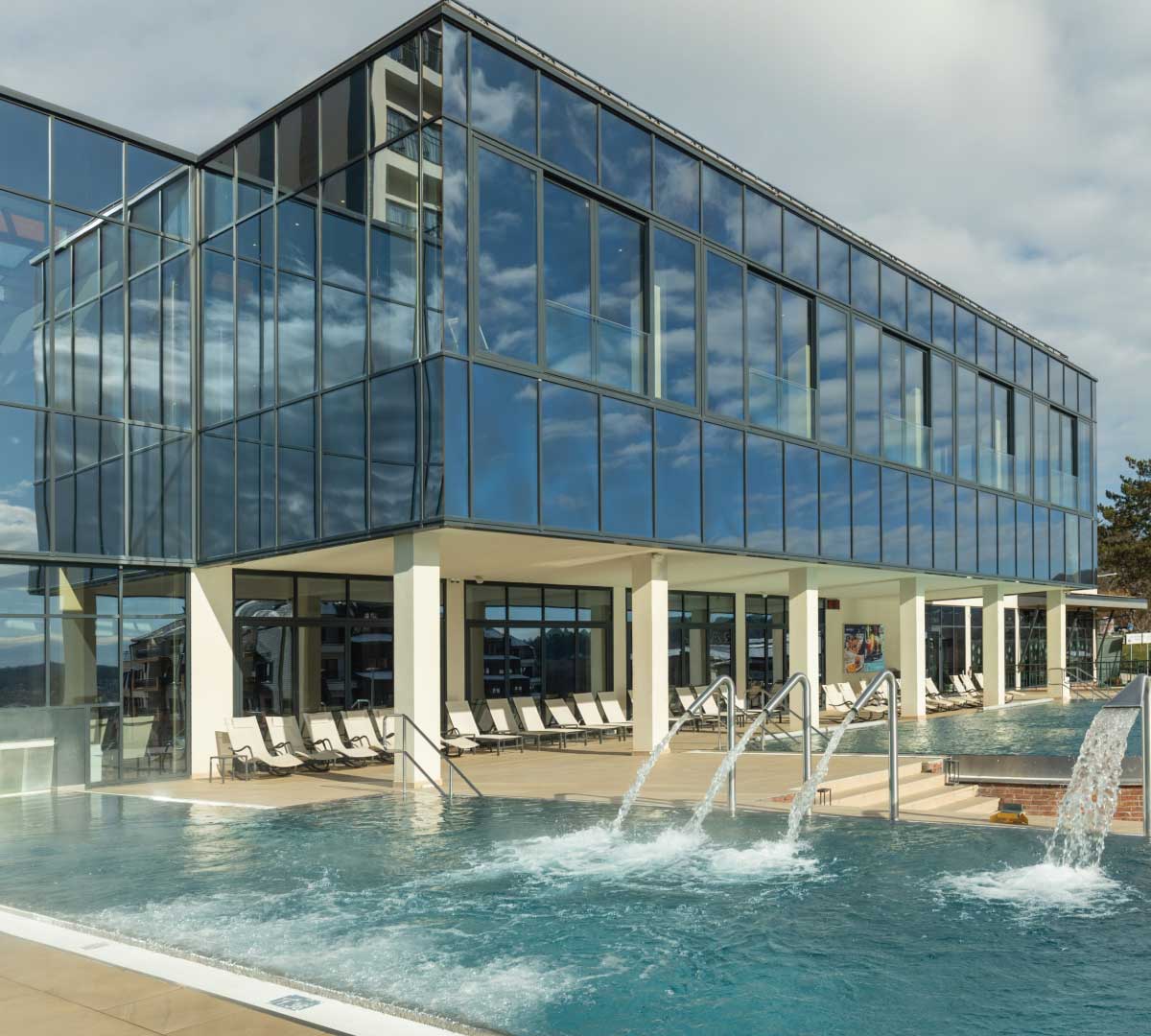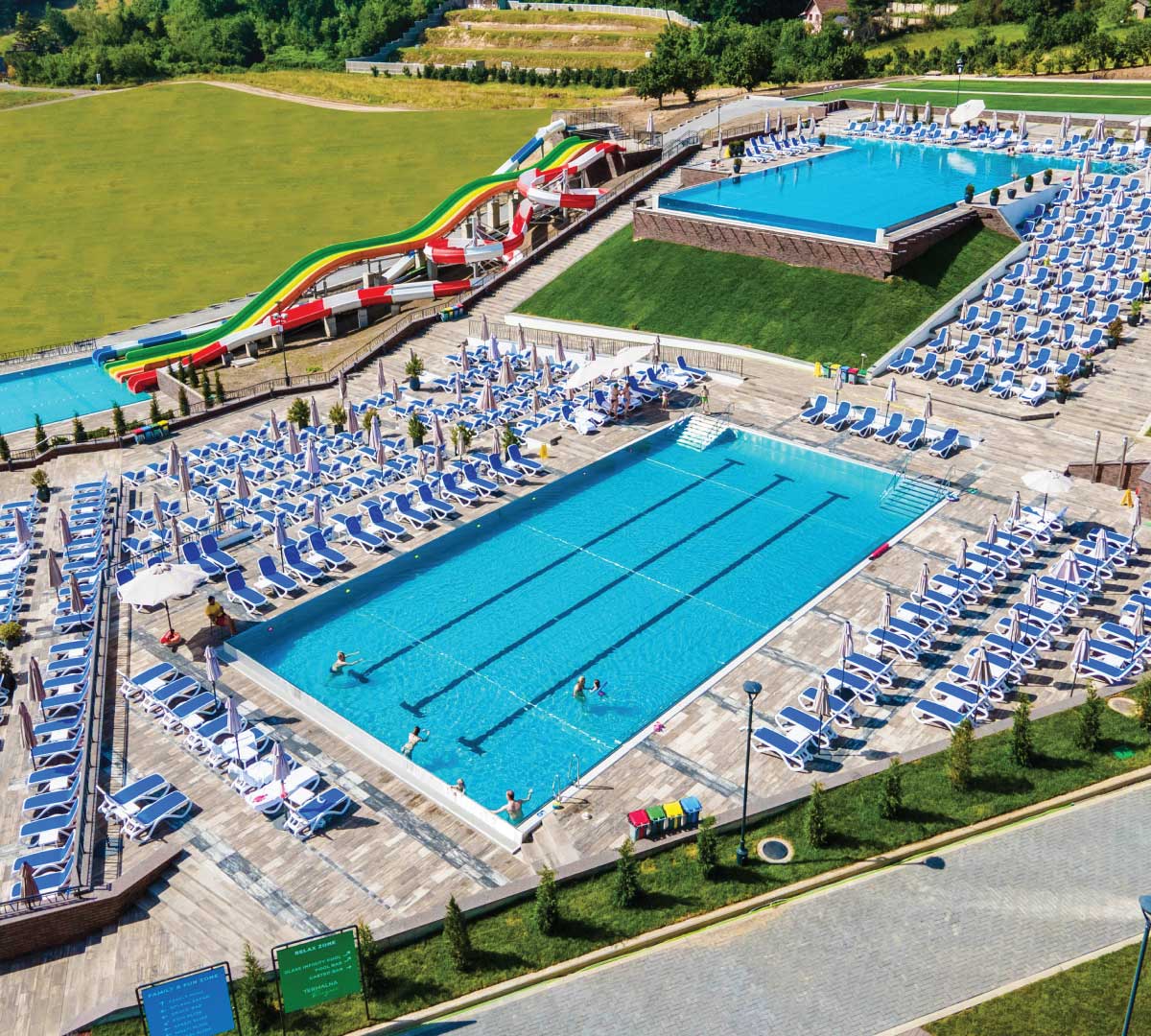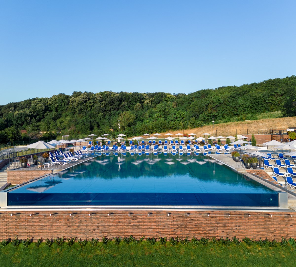 Termalna rivijera Fruške terme – kompleks otvorenih water fun sadržaja – infinity bazen sa staklenim zidom i panoramskim pogledom na Banju Vrdnik (500 m2), poluolimpijski bazen, dečji bazen sa prskalicama i tri vrste tobogana za goste svih uzrasta.