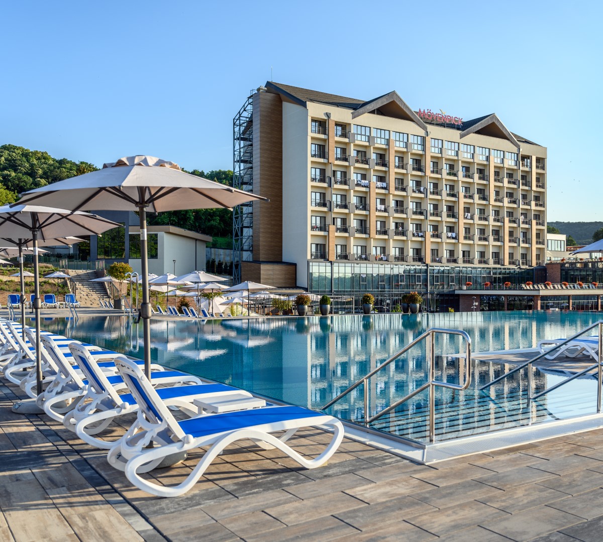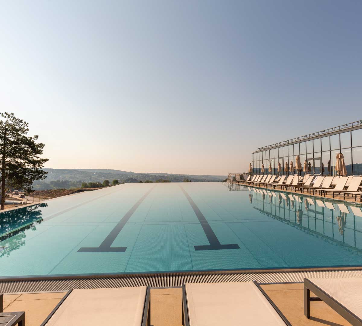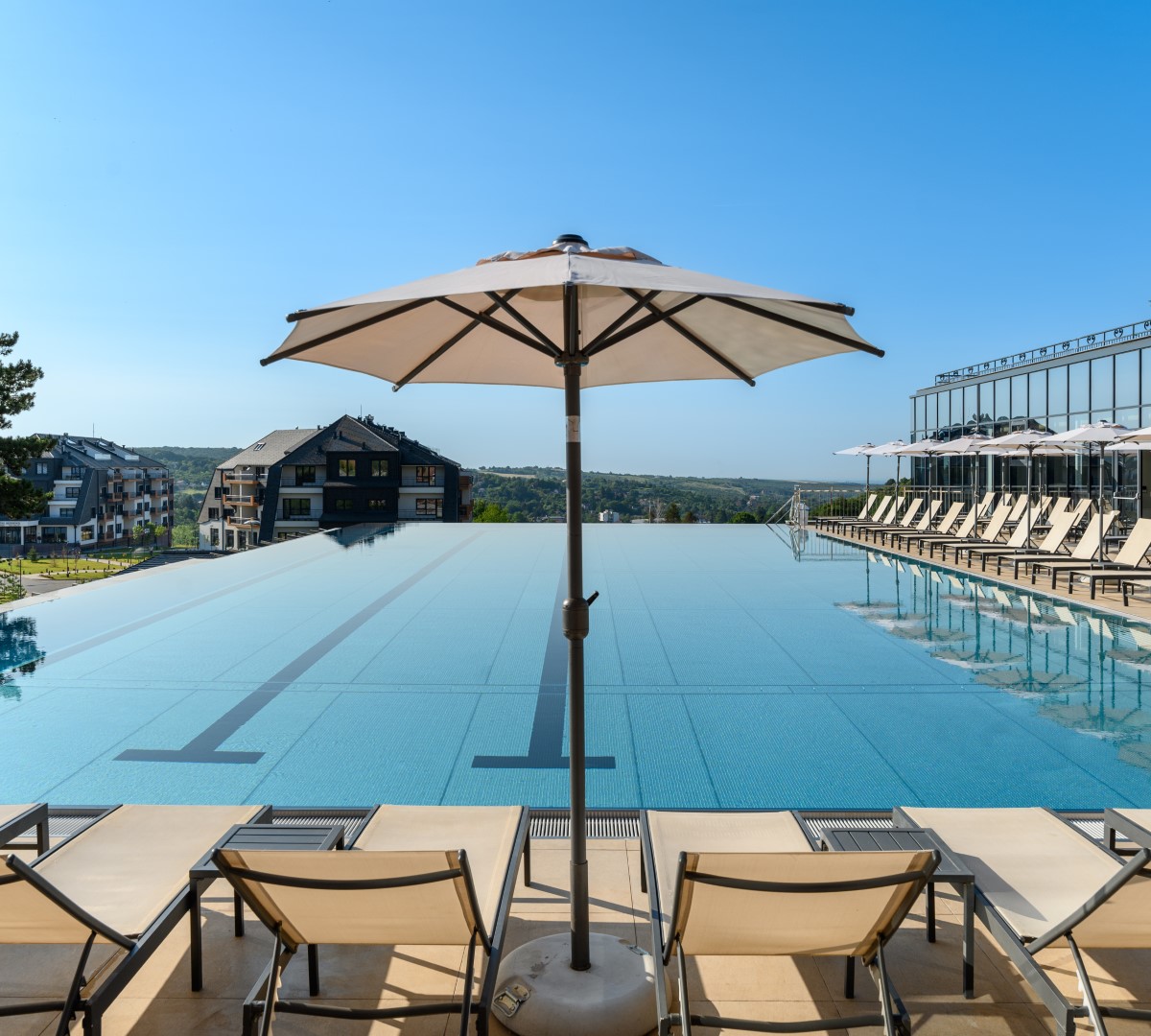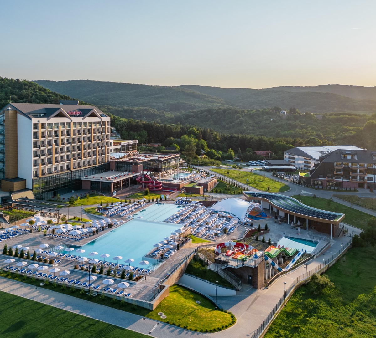 Termalna rivijera Fruške terme – kompleks otvorenih water fun sadržaja – infinity bazen sa staklenim zidom i panoramskim pogledom na Banju Vrdnik (500 m2), poluolimpijski bazen, dečji bazen sa prskalicama i tri vrste tobogana za goste svih uzrasta.