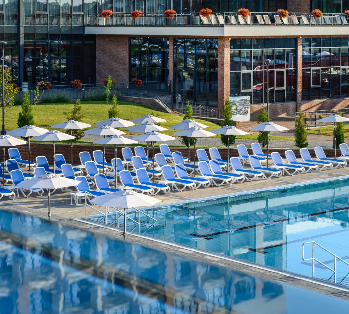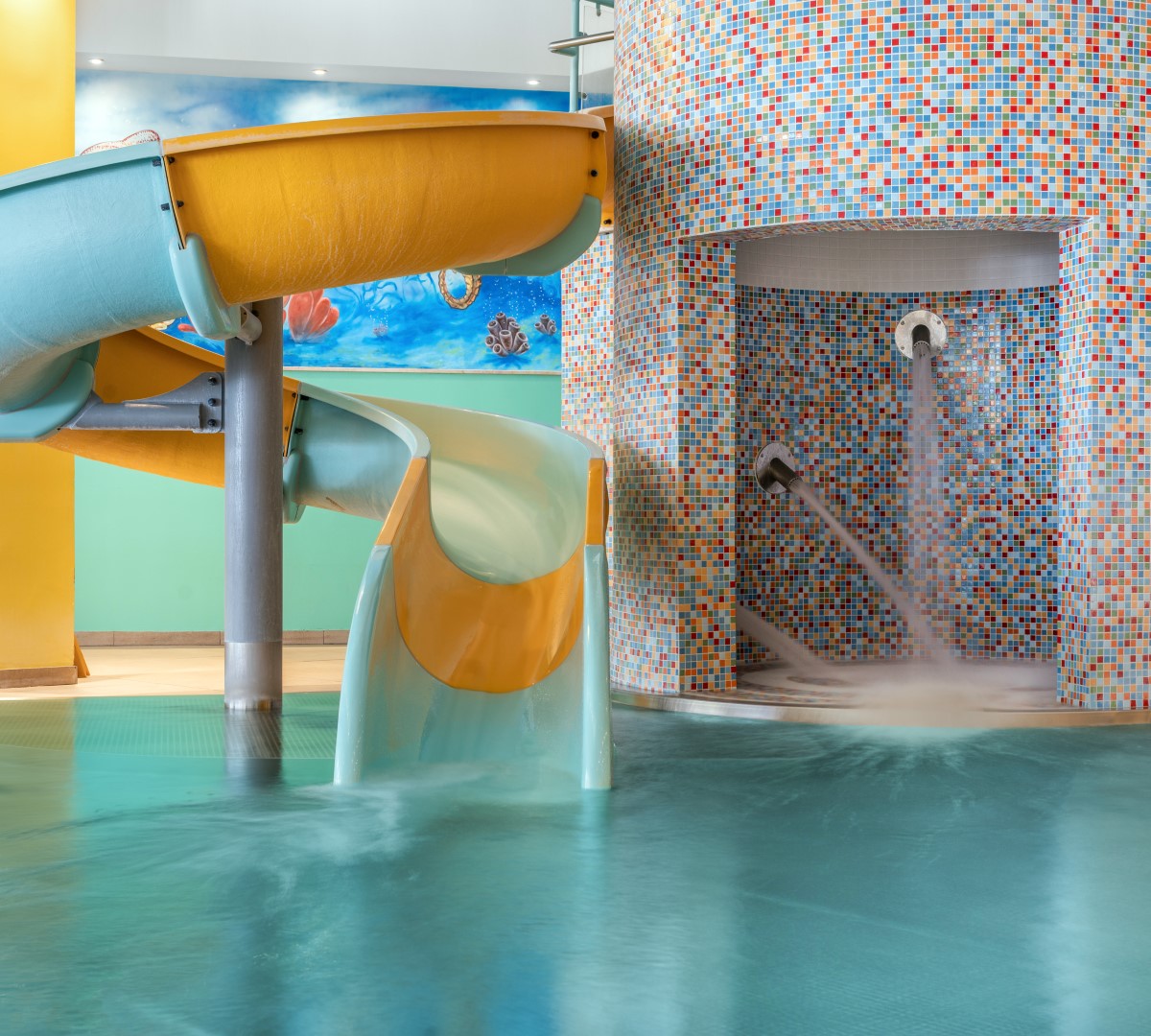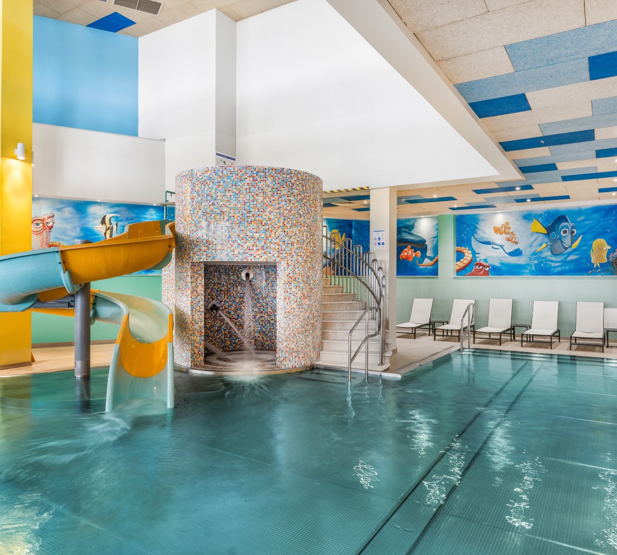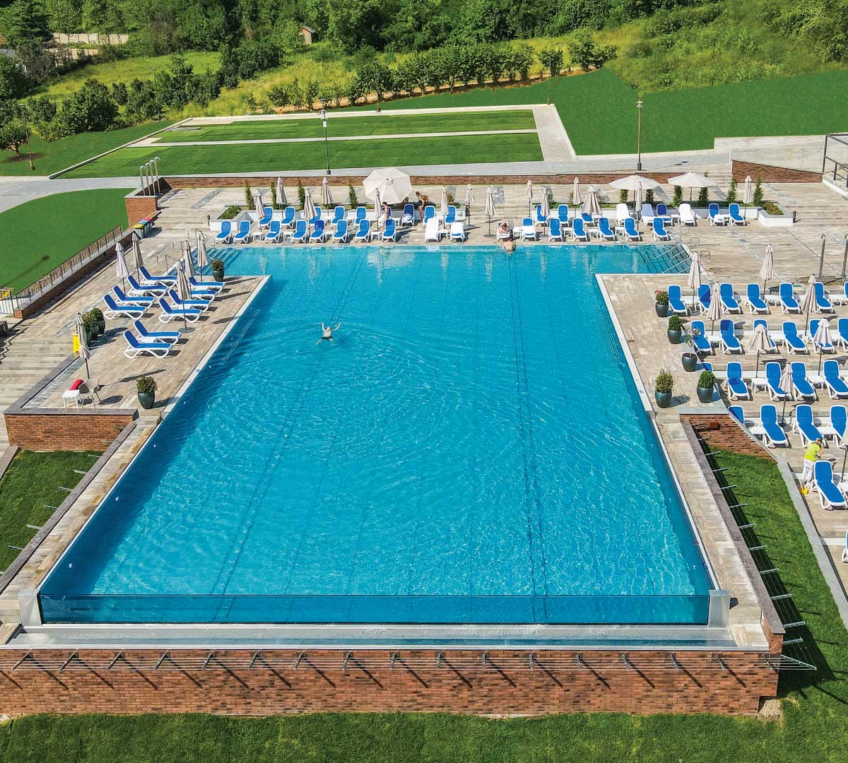 Termalna rivijera Fruške terme – kompleks otvorenih water fun sadržaja – infinity bazen sa staklenim zidom i panoramskim pogledom na Banju Vrdnik (500 m2), poluolimpijski bazen, dečji bazen sa prskalicama i tri vrste tobogana za goste svih uzrasta.