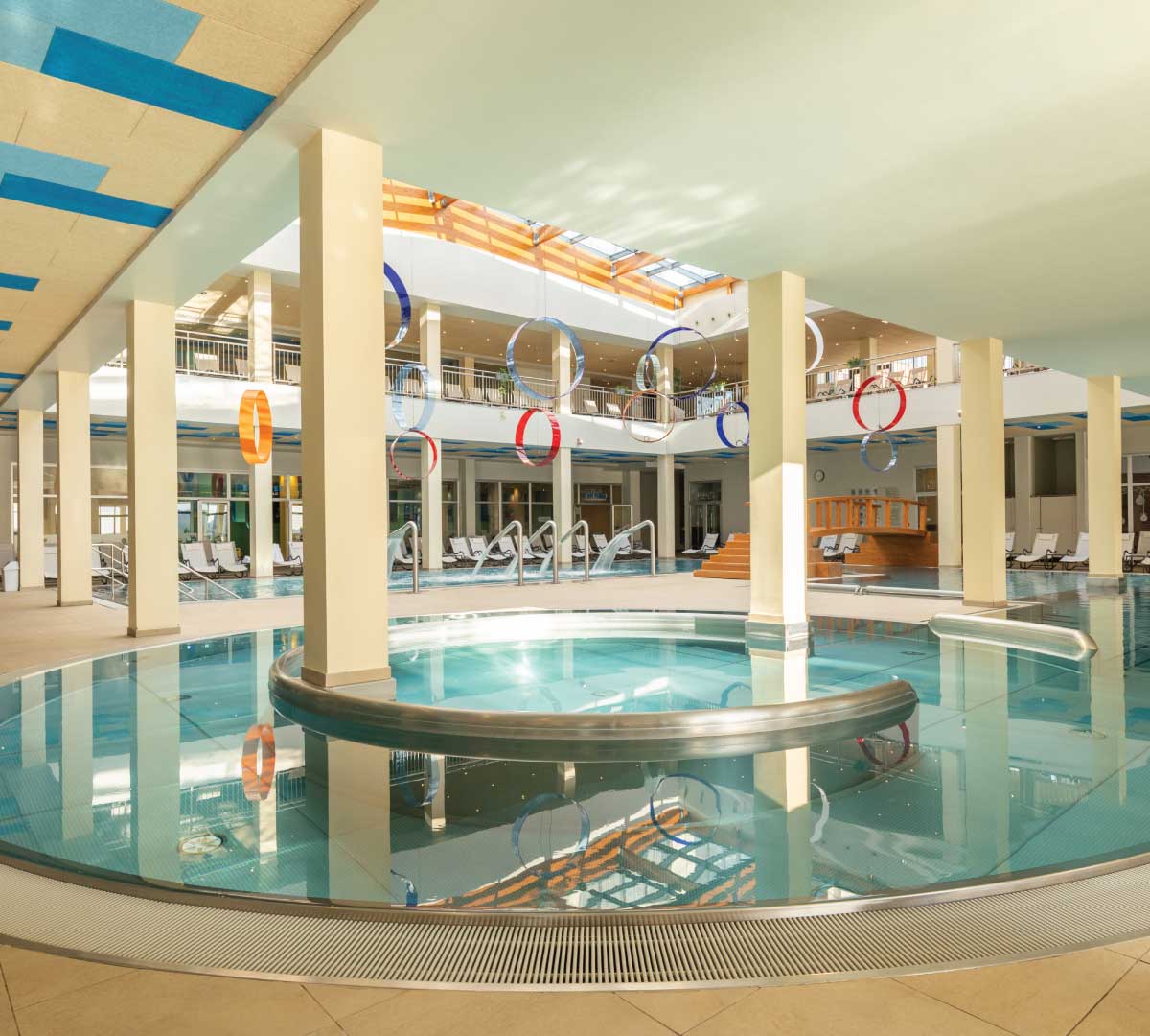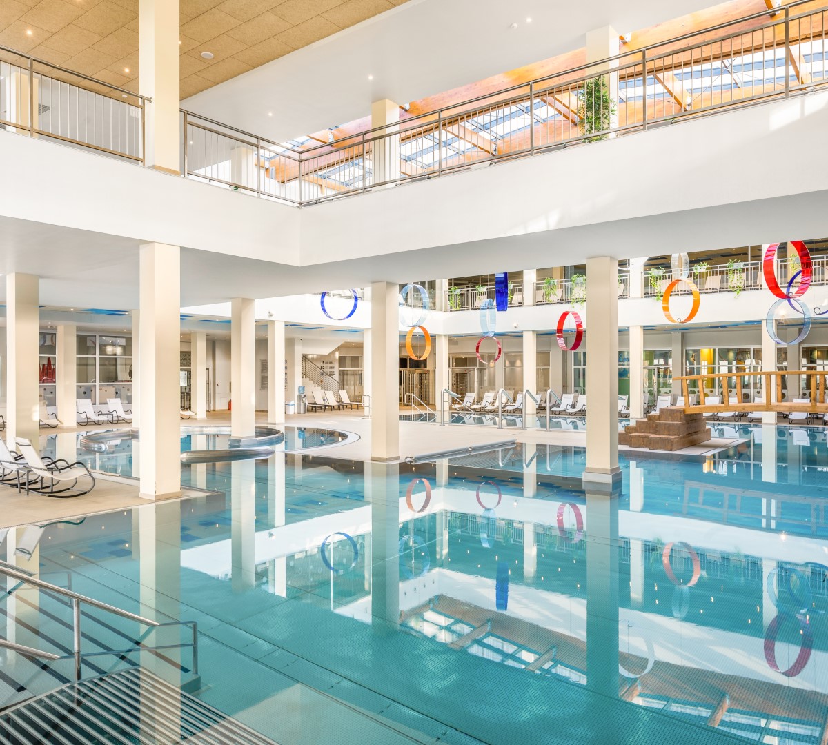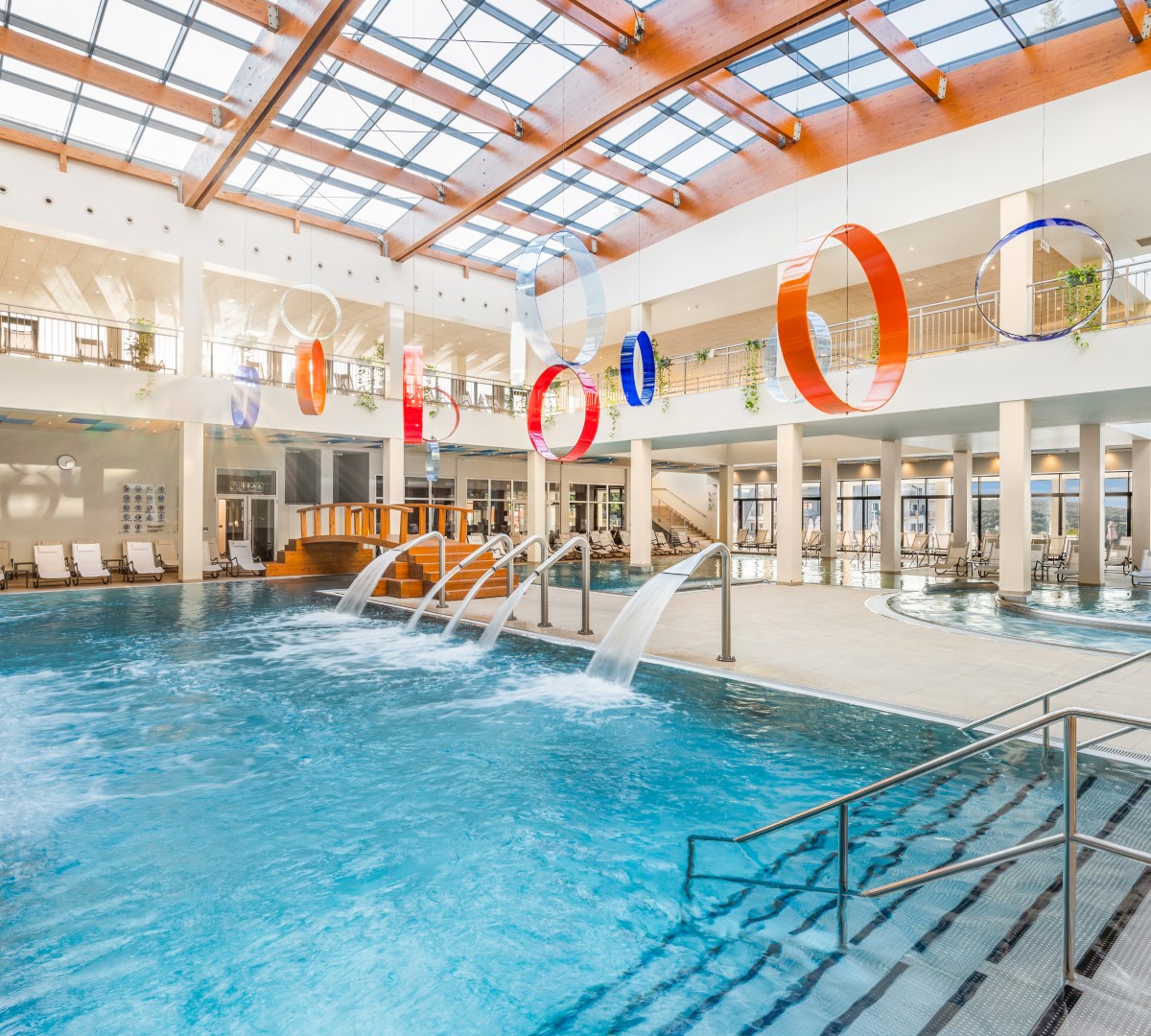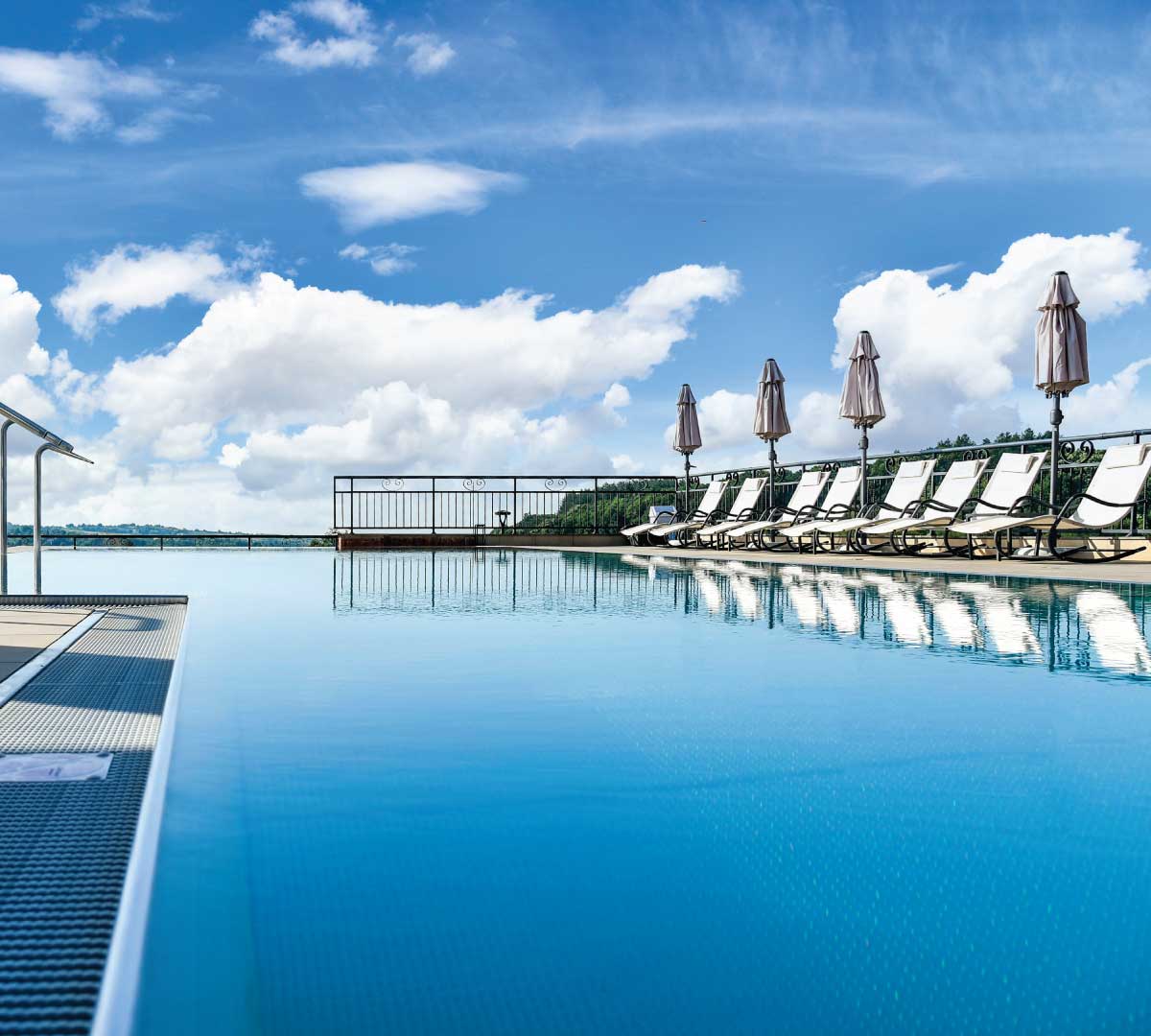 Termalna rivijera Fruške terme – kompleks otvorenih water fun sadržaja – infinity bazen sa staklenim zidom i panoramskim pogledom na Banju Vrdnik (500 m2), poluolimpijski bazen, dečji bazen sa prskalicama i tri vrste tobogana za goste svih uzrasta.