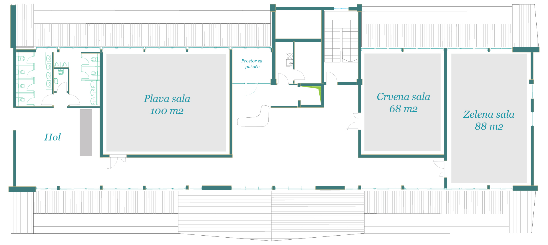 | Plava sala 100m2 | / | / | / | / | / | / | 64 | / |